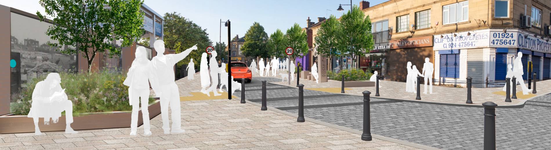 New street furniture and planting will create an improved environment for people, with the introduction of slider bollards, the narrowing of the road entrance and the introduction of a raised table along most of the street.