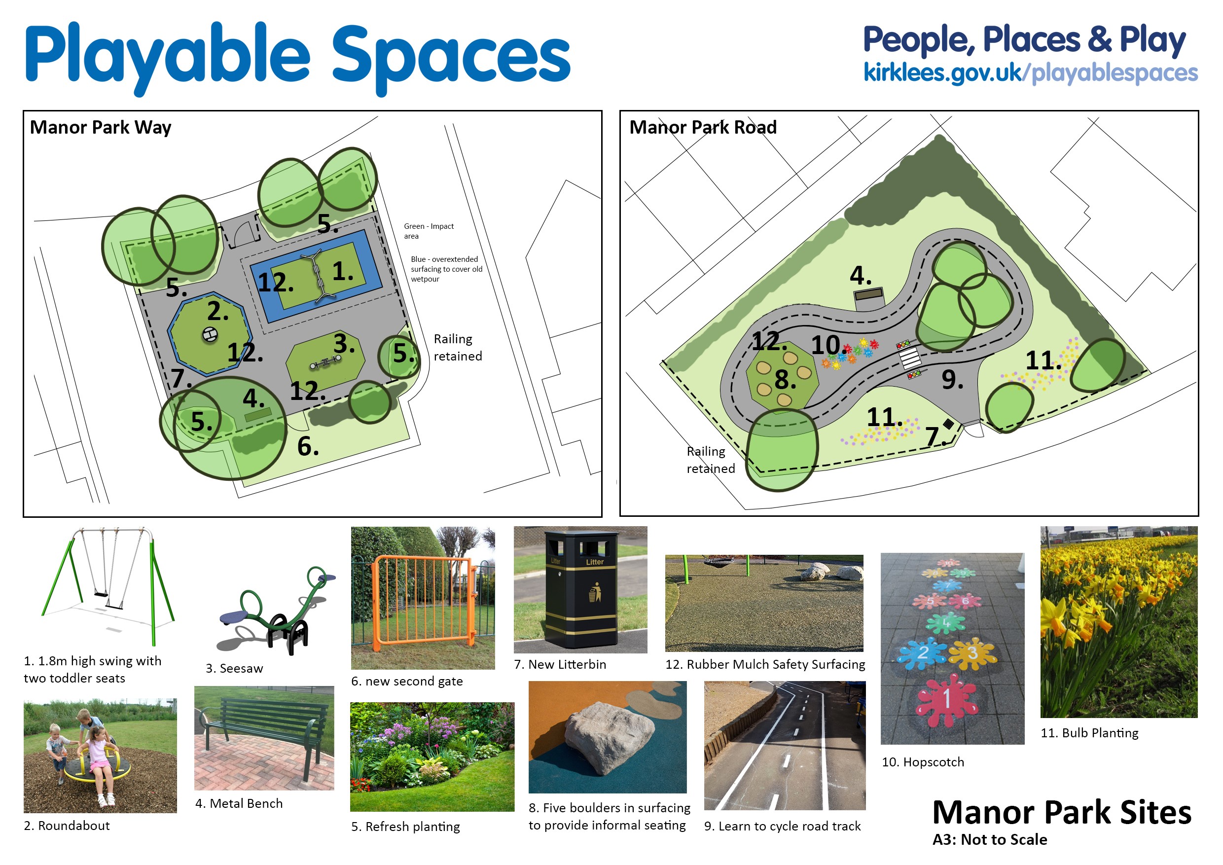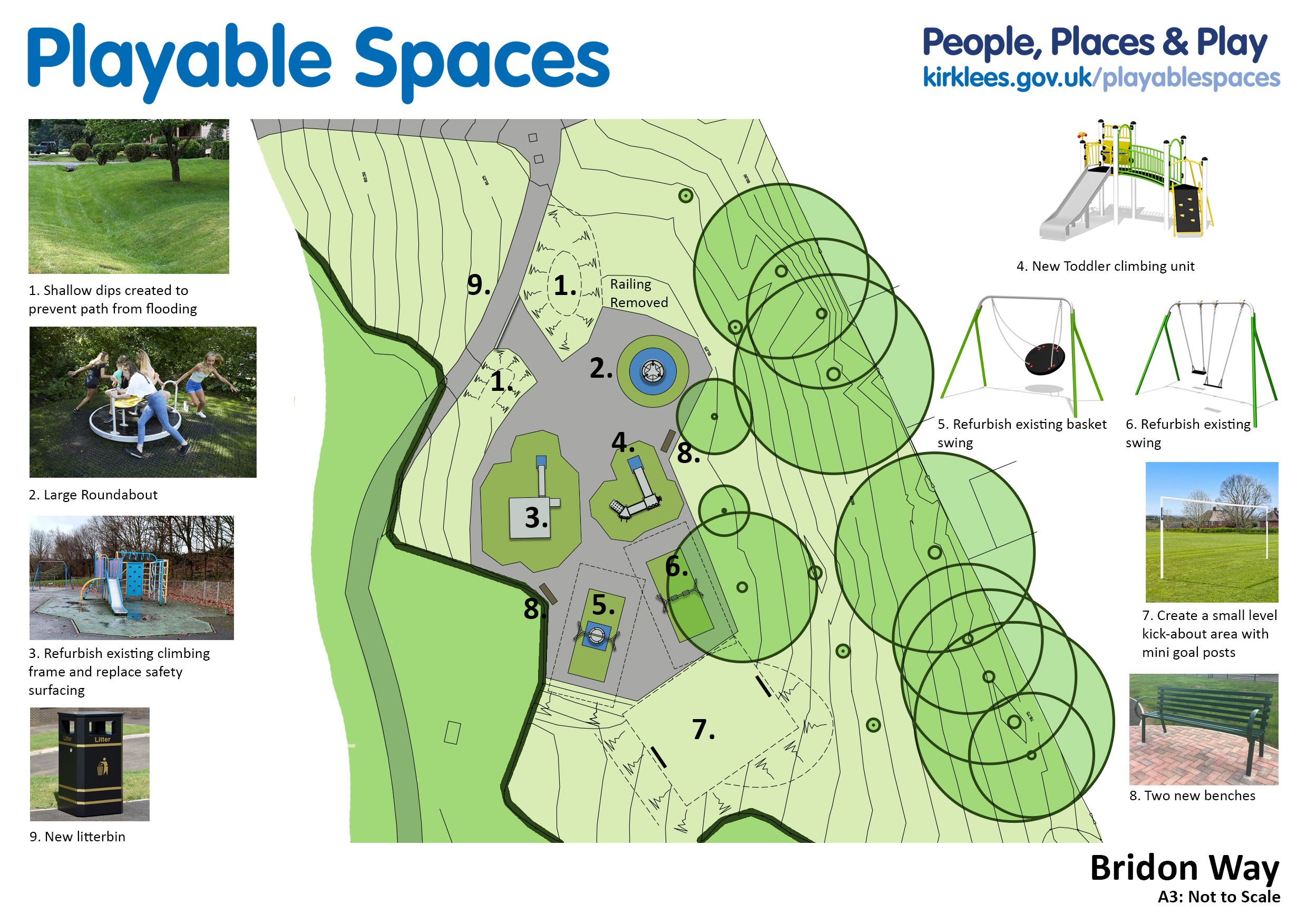 Bridon Way, Manor Park Road play areas are located in the Cleckheaton Ward, and we have secured funding from Kirklees Council to improve this space as part of the Kirklees Playable Spaces Strategy.