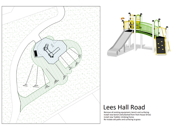 Lees Hall Road will be improved with equipment designed for younger children. These changes will give young people a safe place to socialise, be active and build confidence through play.