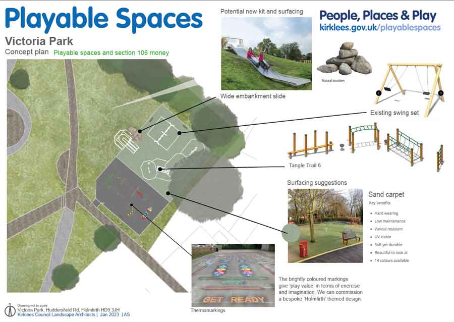 Together with Holme Valley South Ward Councillors we created a new design for the play area at Victoria Park consulted with residents on this.