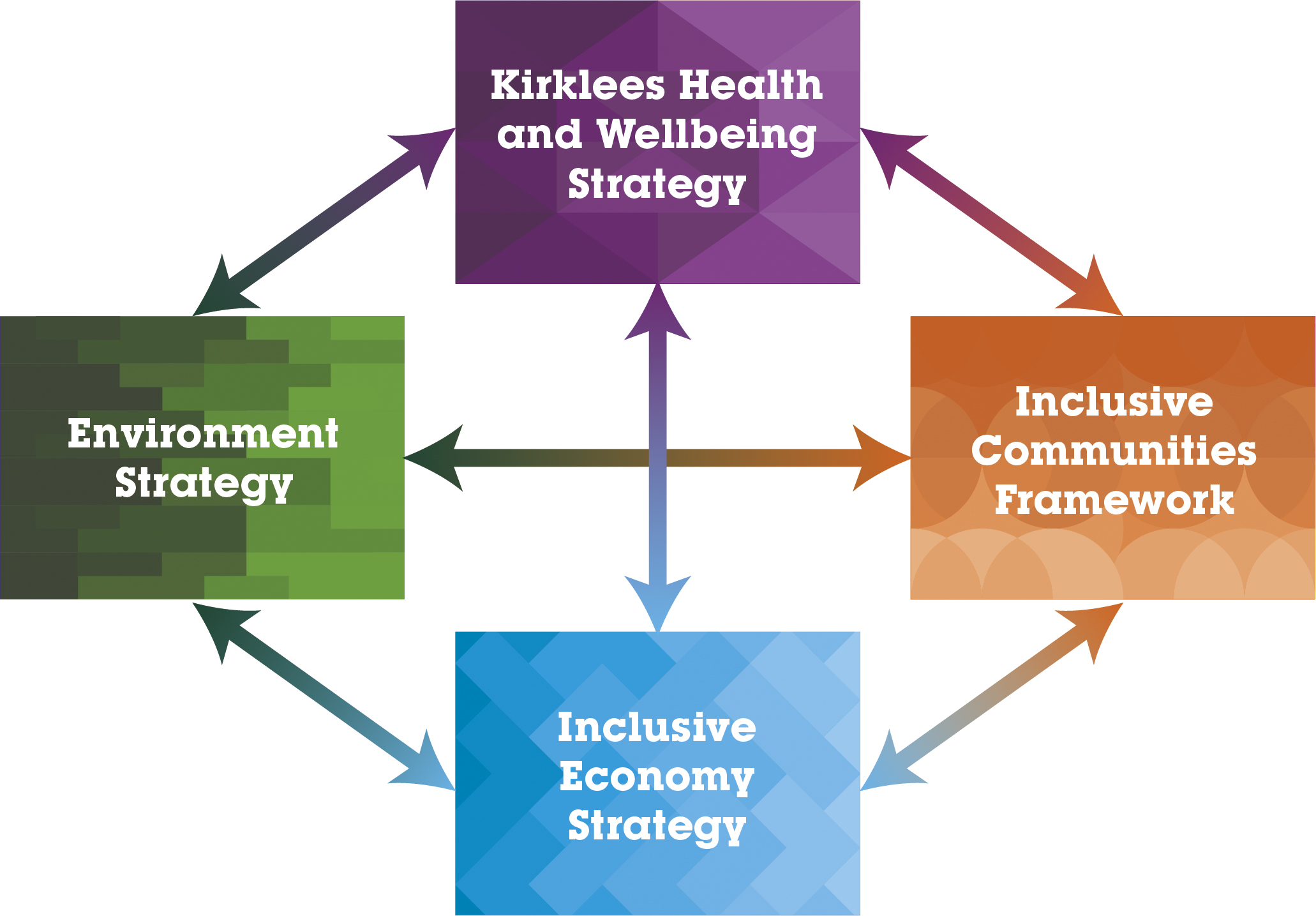 The Council and its partners have a shared vision for Kirklees - for it to be a district that combines a strong, sustainable economy with a great quality of life - leading to thriving communities, growing businesses, high prosperity and low inequality where people enjoy better health and wellbeing throughout their lives.