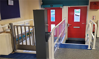 The right-hand door goes to a platform lift. This helps with access for anyone who needs it.