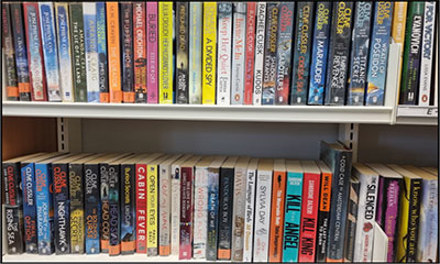 In the library there will be shelves of books.