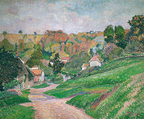 In the 1880s, along with his father, Georges Seurat, and Paul Signac, Lucien Pissarro was involved with the conception of Pointillism (a technique of painting in which small, distinct dots of pure colour are applied in patterns to form an image). He moved to England in 1890, bringing with him first-hand knowledge of new artistic developments in France. In 1916 he became a British citizen and was one of the founders of the Camden Town Group of artists.