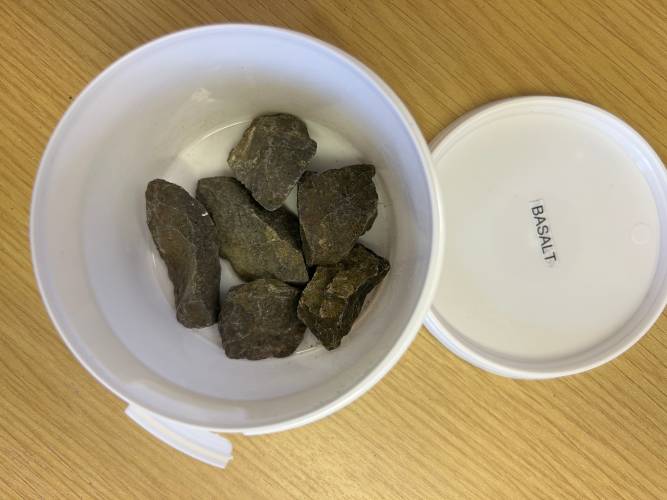 Basalt is typically dark grey or black but can appear quite light in certain circumstances.