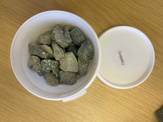 Gabbro is formed during the cooling of magnesium and iron rich magma beneath the earth's surface.