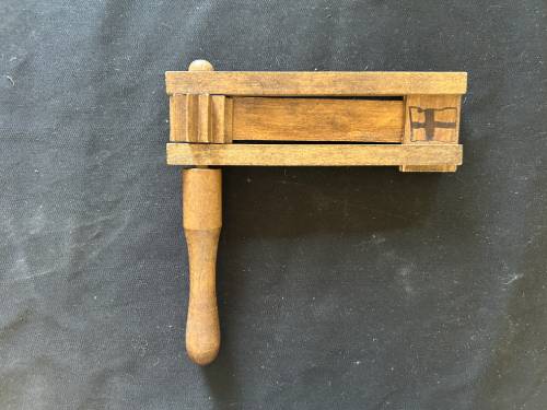 By holding the handle and spinning the rattle around it would make a distinctive clicking noise. The all clear would be given by a ringing bell.