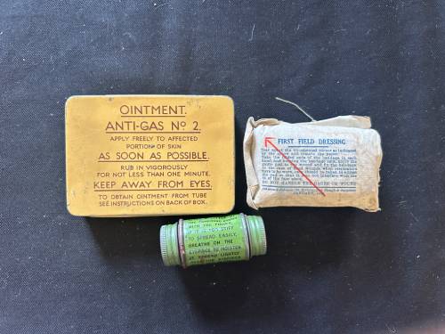 Other supplies included anti-gas ointments, for use on skim contaminated by Mustard Gas, and anti-dimming cloths to stop gas masks from steaming up.
