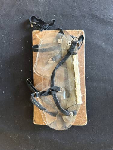 The British WW2 Anti Gas Glasses were issued to soldiers during World War 2 as a protective measure against gas attacks. The glasses came in two variants, one with clear lenses and the other with tinted lenses for use in bright sunlight.