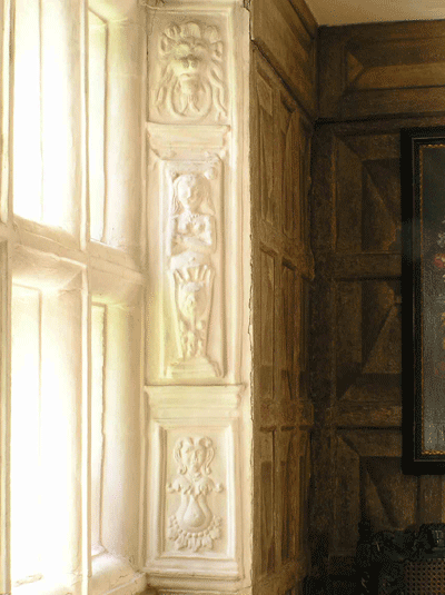 As Charlotte Bronte observed, Oakwell is not a grand house, but it does contain interesting decorative detail. Classical Tuscan columns in the hall were popular in the Elizabethan era when architect Robert Smythson used them in grand mansions. By the 17th century the use of classical motifs had filtered down to the local builders employed by the Batts, including the caryatid (female figure) found on the side of windows in the Great Parlour.