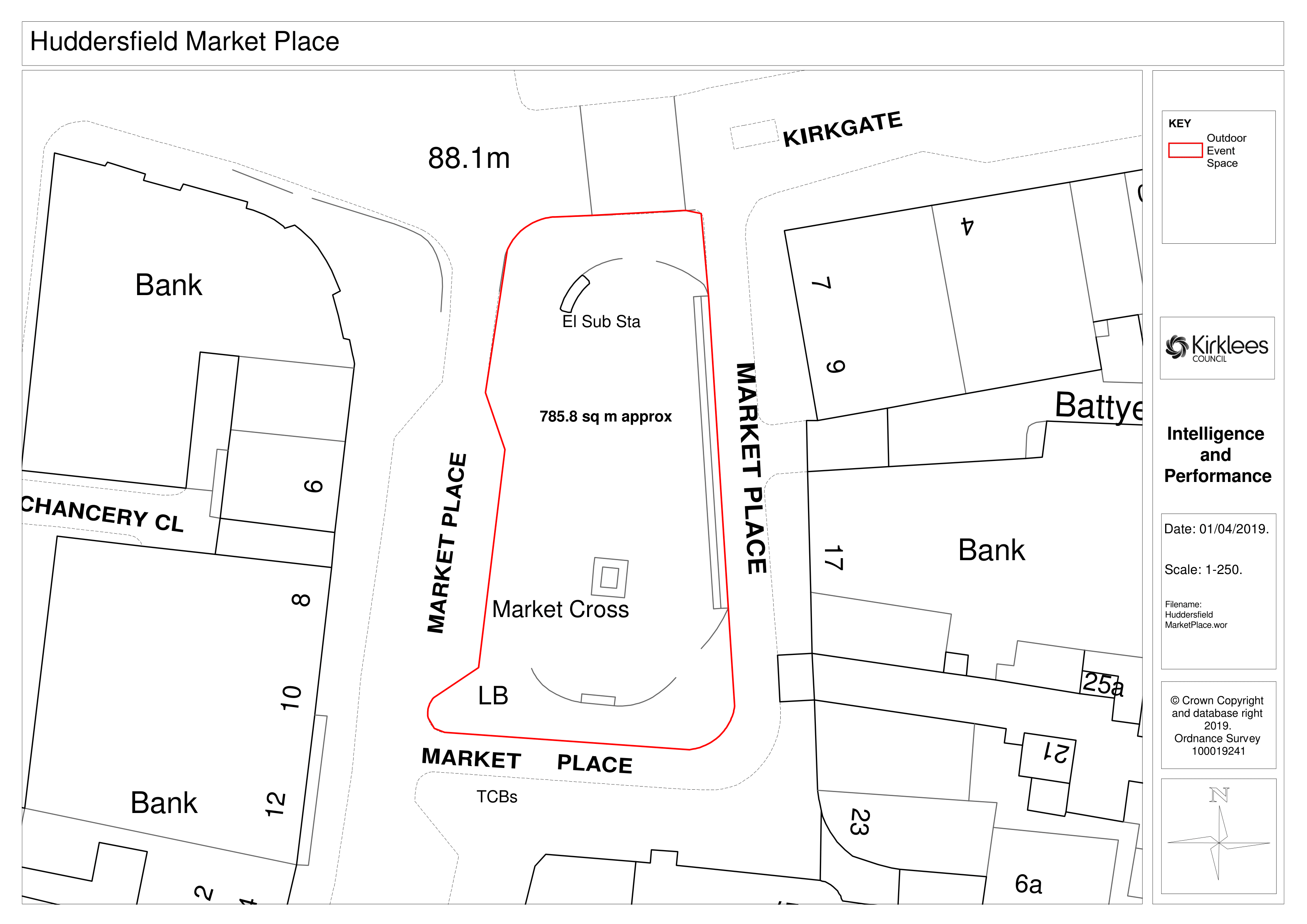 Located at the junction of Westgate and John William Street, this pleasant space with some seating marks the centre of Huddersfield town. Weight restrictions apply to this site and so it can only be used for small events/activities with light infrastructure or product promotion. The space has been used for street theatre performances, continental and international markets in the past.